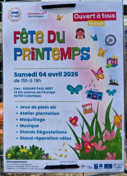 Le CSC Europe, avec qui nous nouons un nouveau partenariat, nous a invités à venir à leur fête du printemps, organisée au square Paul Bert, tout proche de la résidence. Stands gourmands et jeux pour les enfants étaient proposés sous un soleil fort agréable. Nous avons profité de douceurs régressives tout en observant les enfants jouer. Ce fut également l'occasion d'une petite marche dans les rues de Colombes, l'occasion d'explorer ou redécouvrir le quartier tout en faisant un peu d'exercice physique.
