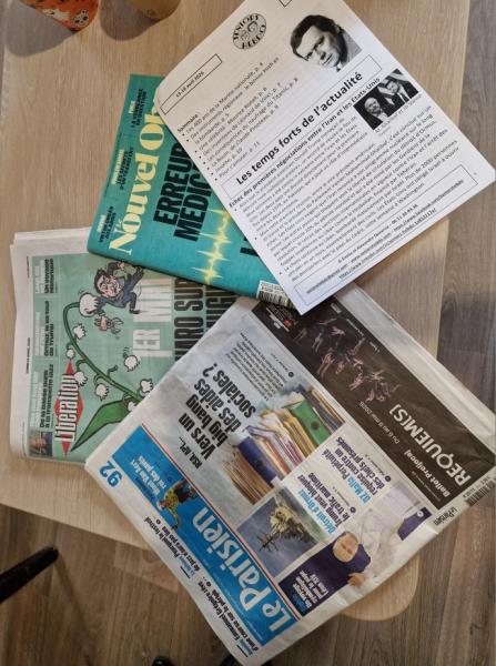 Tous les lundis matins, les résidents se donnent rendez-vous pour la revue de presse! L'occasion d'évoquer les sujets nationaux et internationaux, entre inquiétude, gravité, optimisme et légèreté... Ce rendez-vous incontournable lance la semaine grâce à des supports variés : les journaux télévisés écoutés par les résidents, les journaux auxquels nous sommes abonnés (Seniors Hebdo, Vite Lu) mais aussi des articles variés proposés par la presse nationale. C'est un moment d'échanges et de discussions parfois vives, parfois consensuelles.