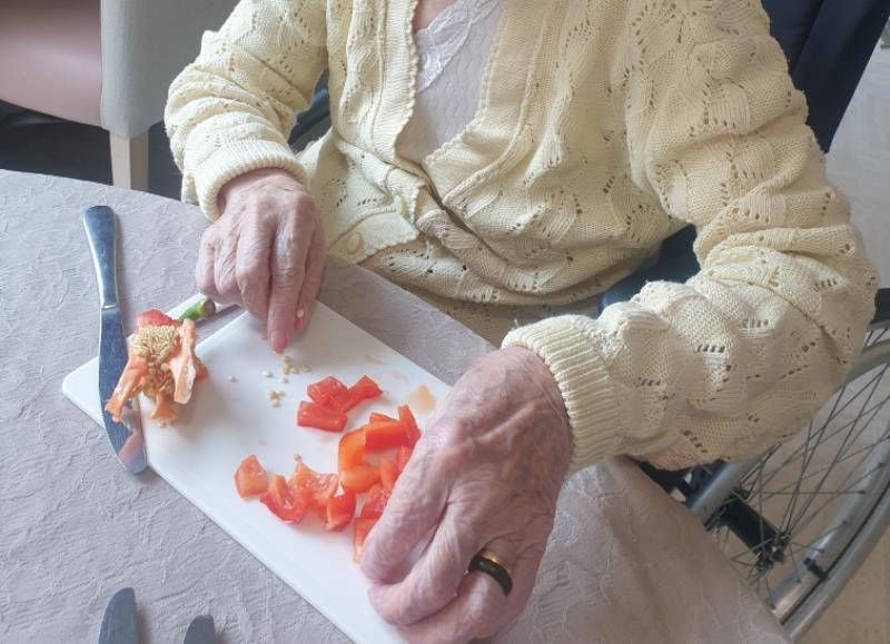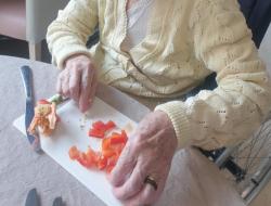 Les résidents viennent leur dire bonjour, les observer, ils s'intéressent à leur mode de vie et sont mis à contribution pour favoriser leur bien-être et répondre à leurs besoins. Nous sortons ainsi régulièrement acheter des légumes. C'est l'occasion pour les résidents de retrouver les gestes et habitudes de la vie quotidienne, au supermarché ou à la résidence, quand il faut les couper en morceaux et les préparer. Mais le moment préféré des résidents reste le nourrissage: un moment tendresse et câlins avec Alba et Camélia qui se laissent alors caresser ou posent leur petit museau dans la main de leurs bienfaiteurs!