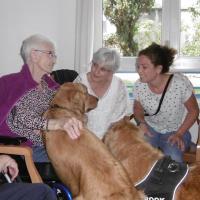 Publiée le 27/06/2019Le 21 juin les résidents ont eu le plaisir de retrouver Melda, Farook et Olaf le neveu de Farook nouveau venu parmi nous. Cette séance a été l'occasion de faire connaissance par des câlins, des caresses et des jeux. Nous retrouverons Camille et ses chiens au mois de juillet pour une séance de groupe et une séance [...] Lire la suite