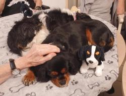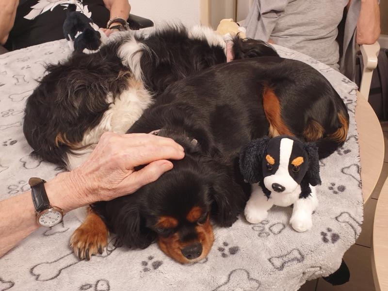 Ce matin, Florence de Soya et Compagnie, est venue avec ses cavaliers King Charles, Ravigote et Chutney, pour une séance de médiation animale.