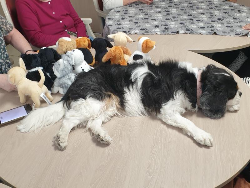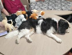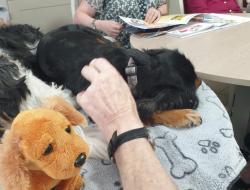 Florence a distribué des peluches représentant différentes races de chiens et proposé un jeu aux résidents: reconnaître des races des photos et les associer avec la bonne peluche. Ce fut l'occasion de tester les connaissances de chacun et d'apprendre les spécificités de chaque type de chiens.
